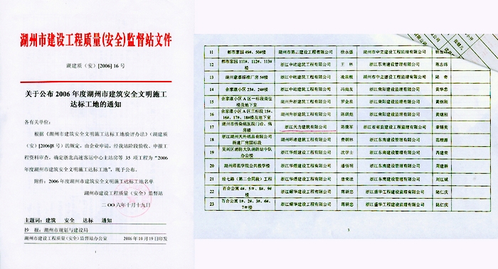 2006年湖州建筑安全文明施工達(dá)標(biāo)工地