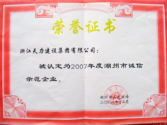 2007年度湖州市誠信示范企業(yè)